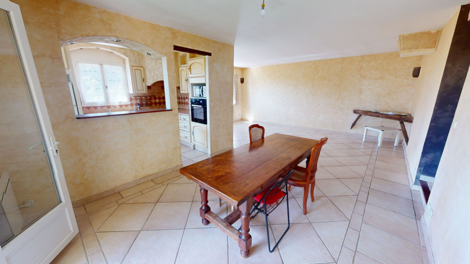 Elle se compose d'un vaste séjour-salle à manger lumineux de 33 m² environ donnant sur une terrasse avec pergola, une cuisine semi-ouverte aménagée et équipée, un coin nuit avec 3 chambres une salle de bains et des toilettes séparées.